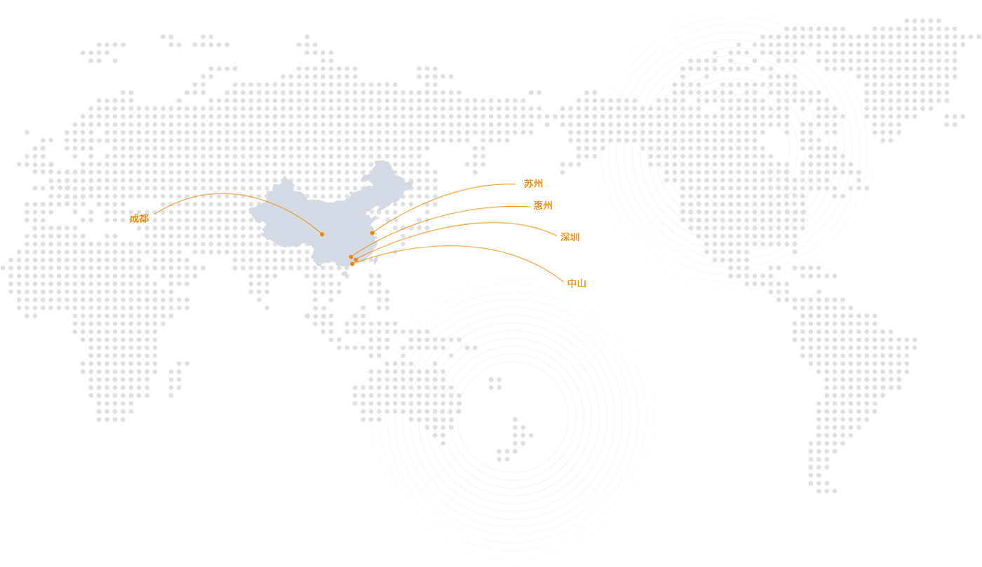 深圳、中山、惠州、成都、苏州、泰国、越南